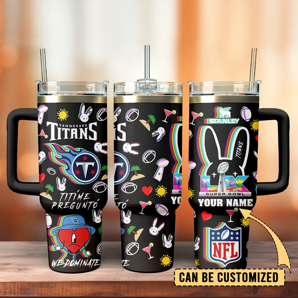 Tennessee Titans NFL x Bad Bunny Custom Stanley Quencher 40oz Stainless Steel Tumbler With Handle