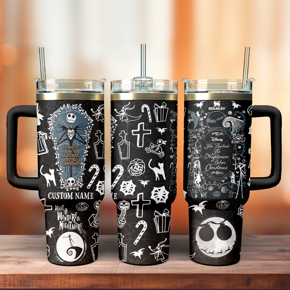 The Nightmare Before Christmas x Halloween Custom Stanley Quencher 40oz Stainless Steel Tumbler With Handle