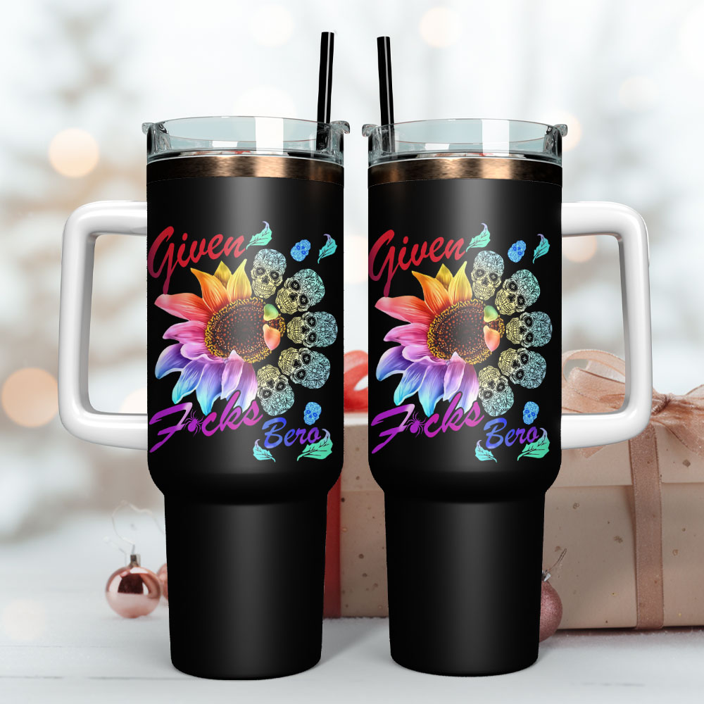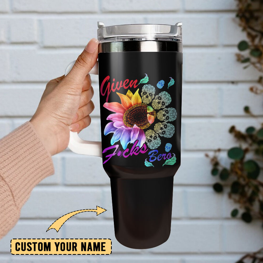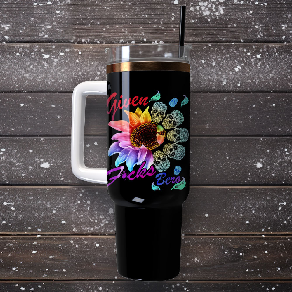 Tie Dye Sunflower Skull Artwork Custom Stanley Quencher 40oz Stainless Steel Tumbler With Handle