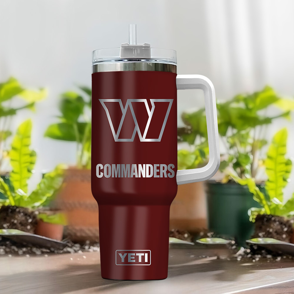 Washington Commanders NFL Laser Engraved Effect Custom Stanley Quencher 40oz Stainless Steel Tumbler With Handle