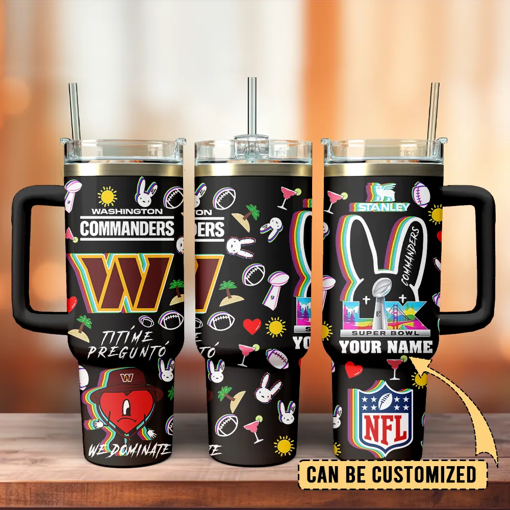 Washington Commanders NFL x Bad Bunny Custom Stanley Quencher 40oz Stainless Steel Tumbler With Handle