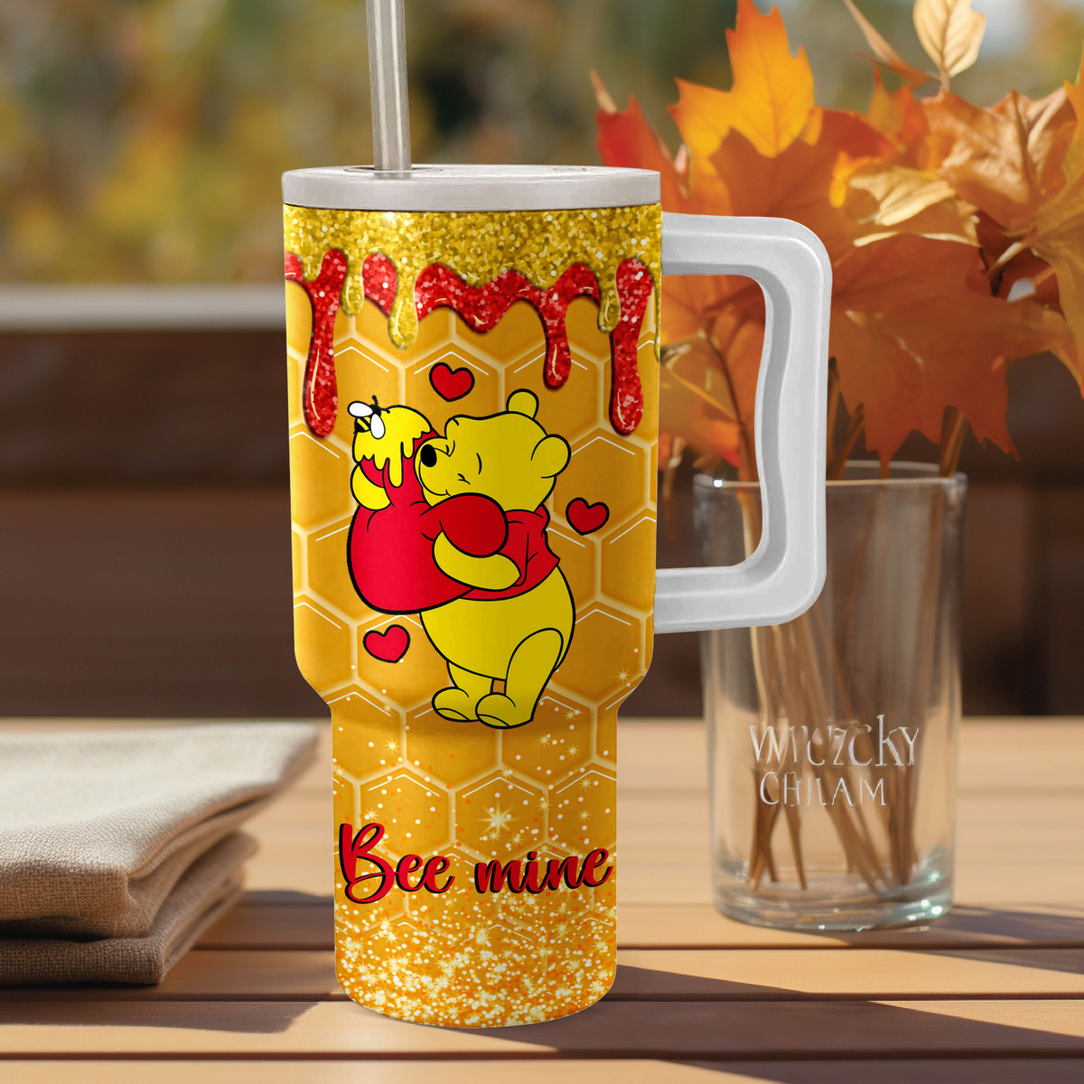 Winnie-the-Pooh Cartoon Custom Stanley Quencher 40oz Stainless Steel Tumbler With Handle